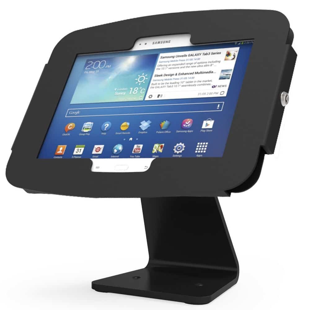 The 360 Rotatable Samsung Galaxy Enclosure Kiosk combines a lockable flip-cover Samsung Galaxy counter-top kiosk with high-quality a security lock system, providing absolute protection and security to your tablet displays.