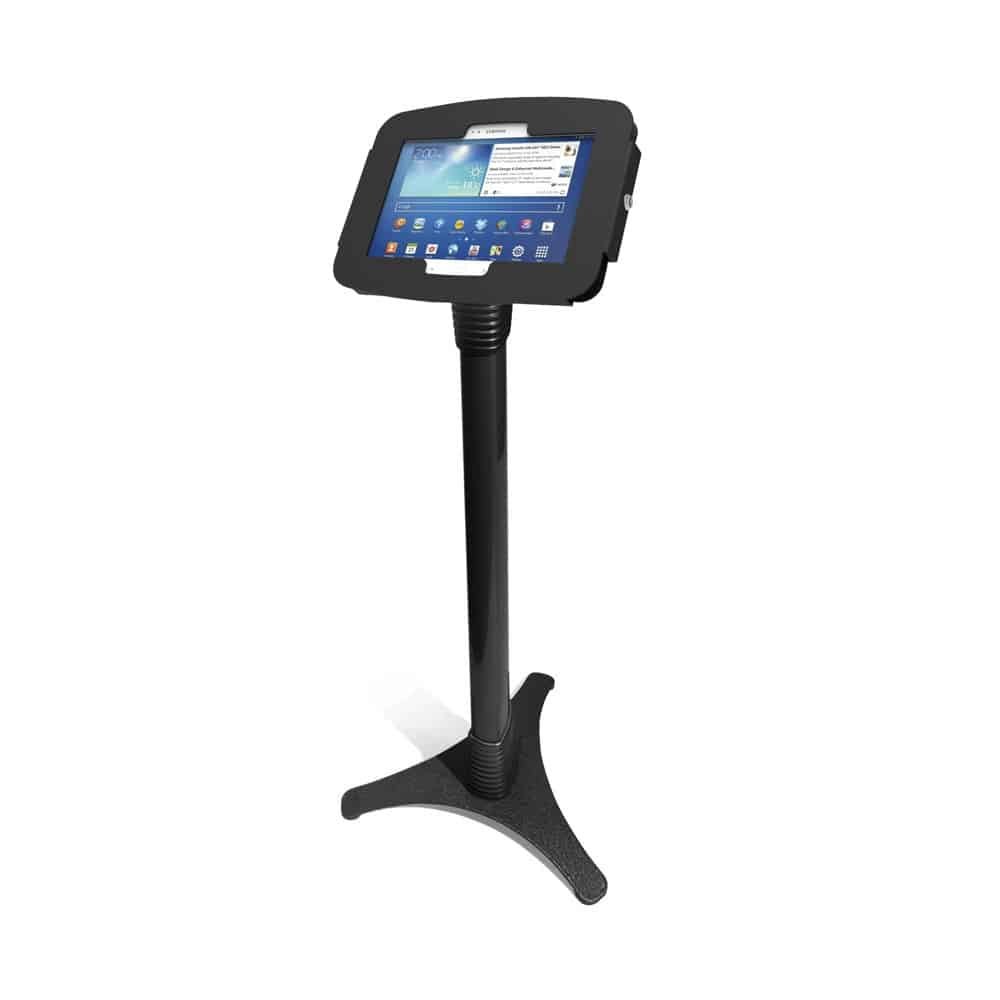 Samsung Galaxy Tablet Enclosure Kiosk with an adjustable floor-standing pole to provide you with the most secure way to display your tablets. Compatible with all 10-inch Samsung Galaxy tablets, this free-standing enclosure comes with an unparalleled security system, making this tablet enclosure a commonly used and trusted solution at major banks, airlines, restaurants, hotels, hospitals and government bodies worldwide.