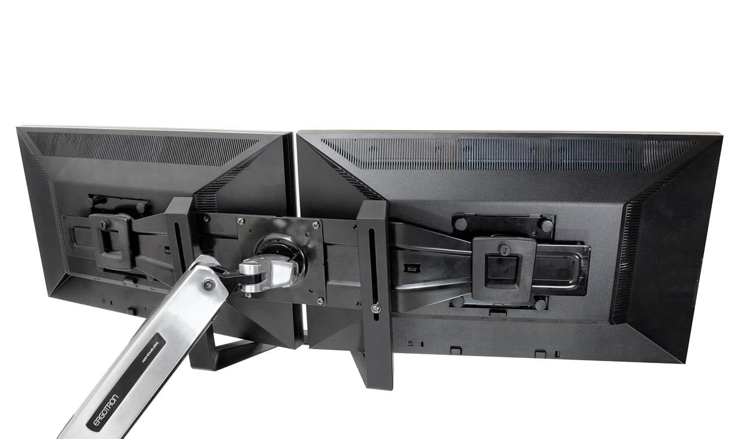 Convert a single-monitor mount so it holds two displays, or increase the size of compatible displays for your current dual-monitor solution. A handle is included to make repositioning of the screens easy. This kit is ideally suited to screens that are 23″ or 24″ in size. It can also be used with many 22″ or 26″ displays. See specifications for details.