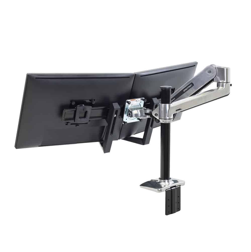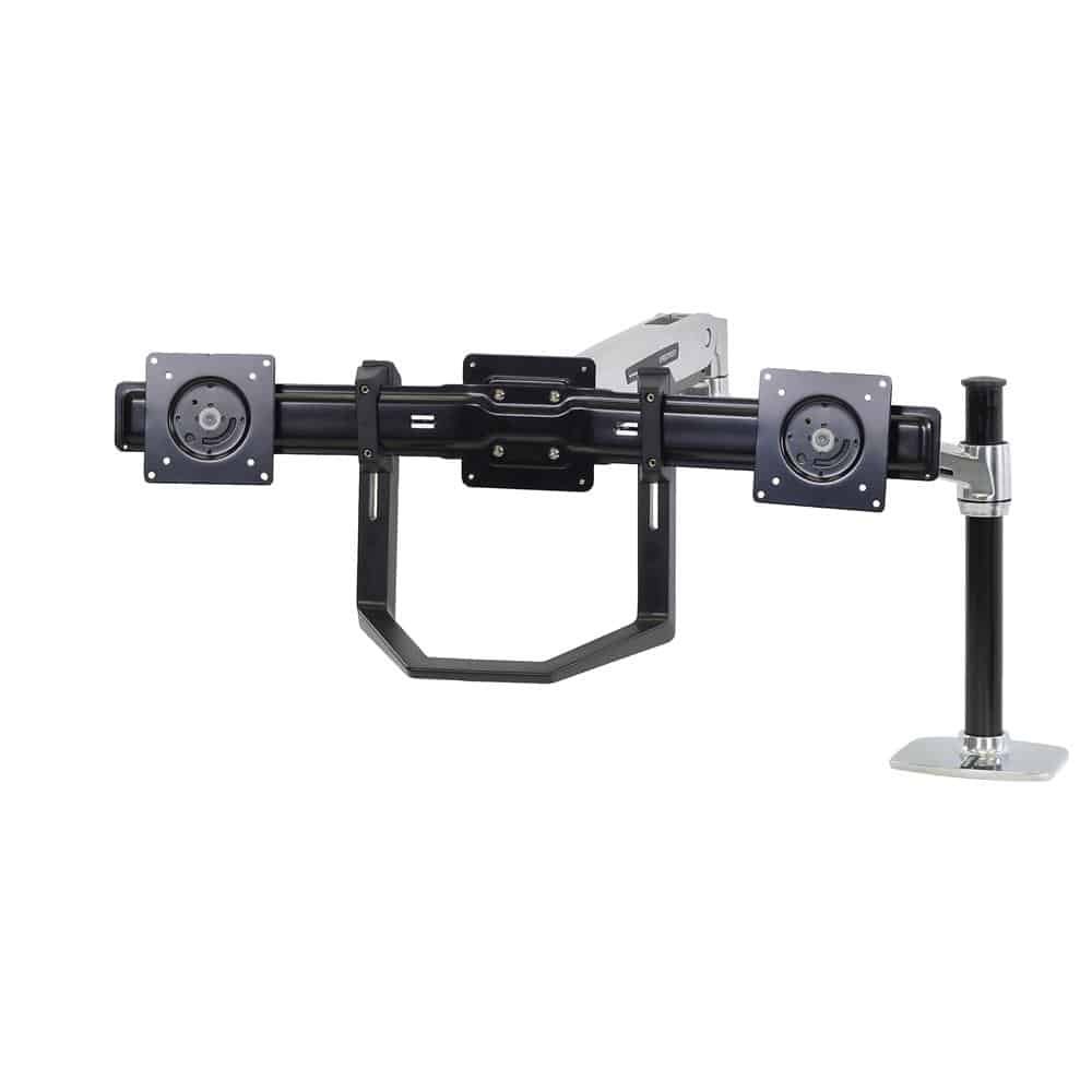 Convert a single-monitor mount so it holds two displays, or increase the size of compatible displays for your current dual-monitor solution. A handle is included to make repositioning of the screens easy.