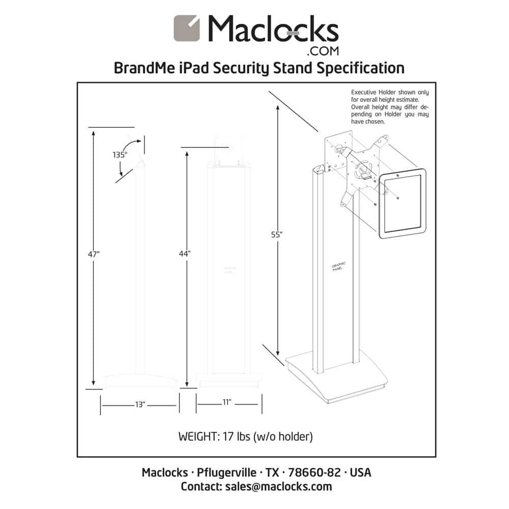 More importantly, all tablet cables and security lock cables can stay protected and hidden inside the stand and its base. This floor-standing