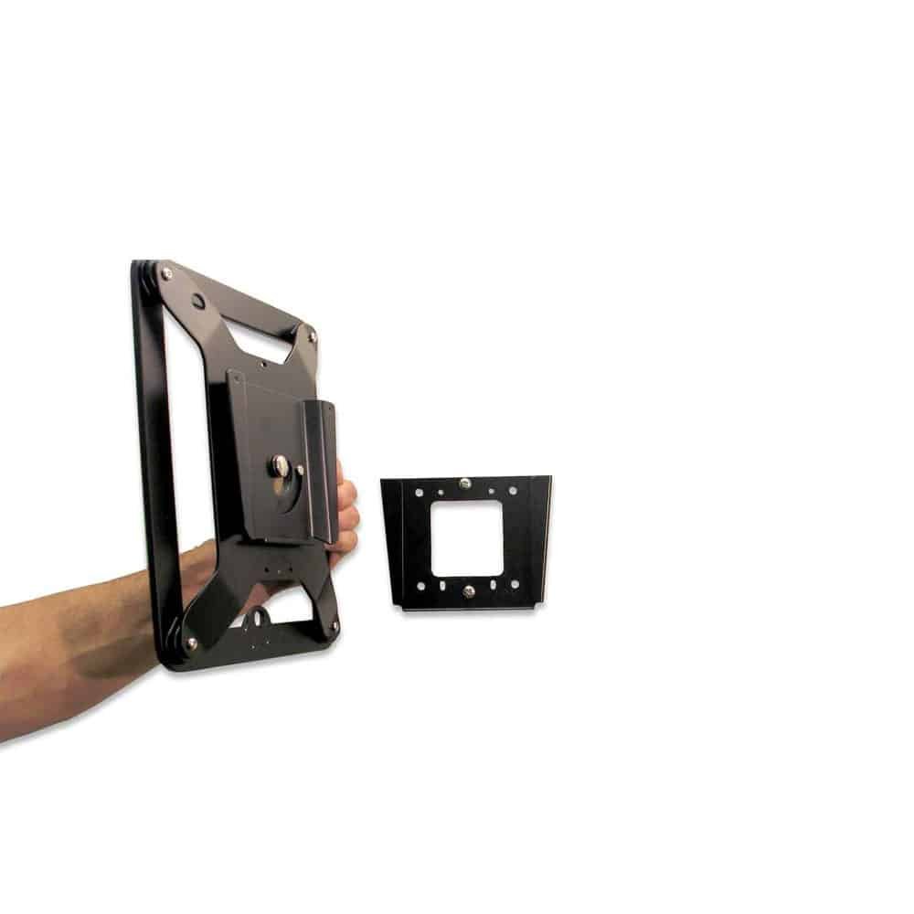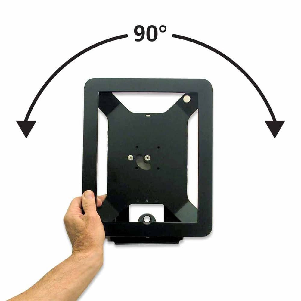 Hard-case iPad Enclosure with Rotatable Wall Mount providing you with an optimal display experience, this iPad enclosure kiosk is a new generation of wall-mounted iPad enclosure designed with capability to rotate in 90 degree angle, making it perfect for landscape or portrait display orientation. Not only does this iPad enclosure is easy to mount, but it also offers you with both open and blocked home button covers for free. This wall-mounted iPad kiosk is made of high quality aluminum, making the iPad enclosure resistant to any tamper or hazardous activities. Nevertheless, despite being made of metal, this iPad enclosure kiosk does not interfere with the iPad’s capability to communicate with external networks such as Wi-Fi, Bluetooth or 3G. Available colour: Black
