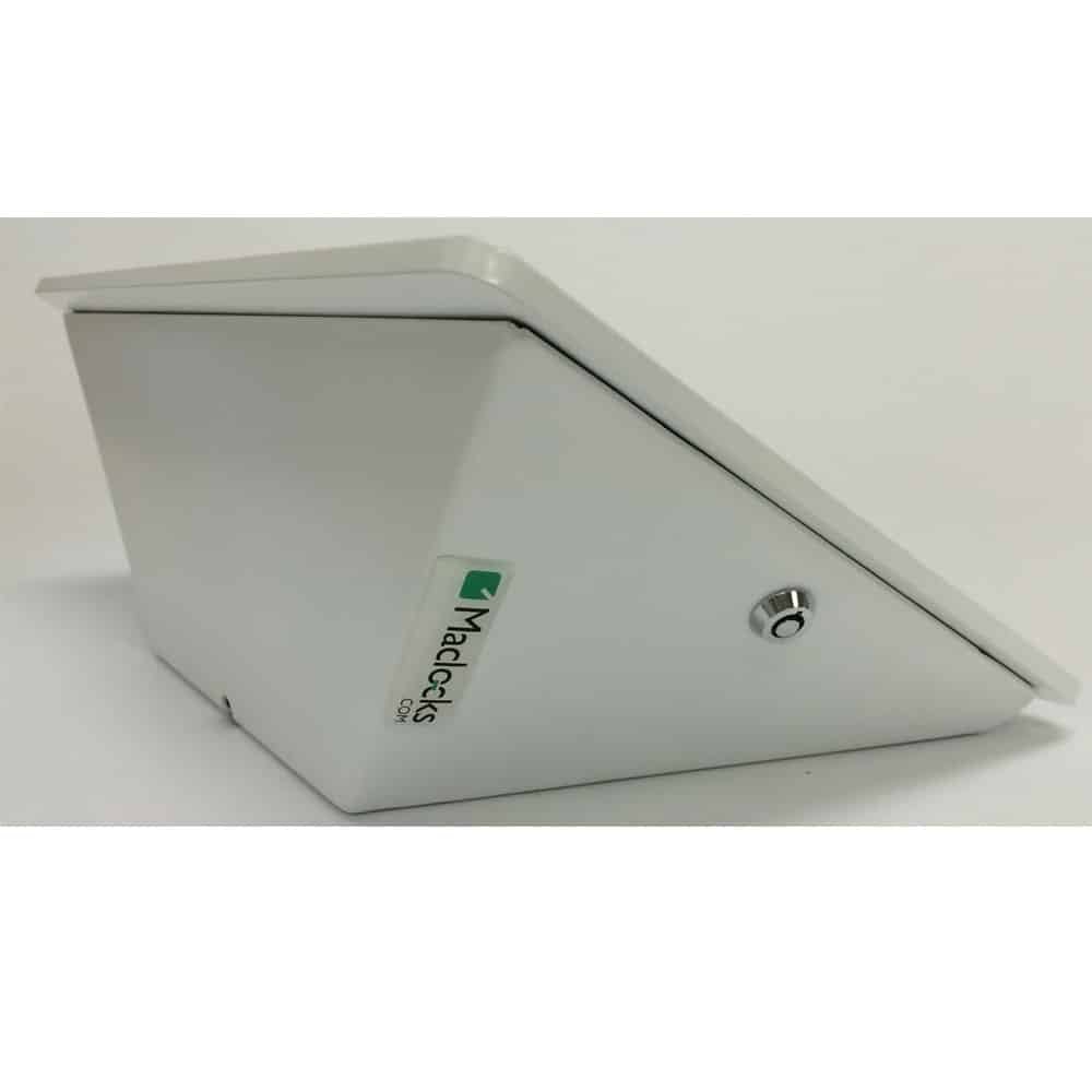 iPad Enclosure Kiosk for iPad air is the best solution for any counter-top iPad display setting. Functioning as a desk-mounted kiosk, this cascading-styled iPad enclosure kiosk will securely display your iPad using the lockable slide wing and cylinder lock.