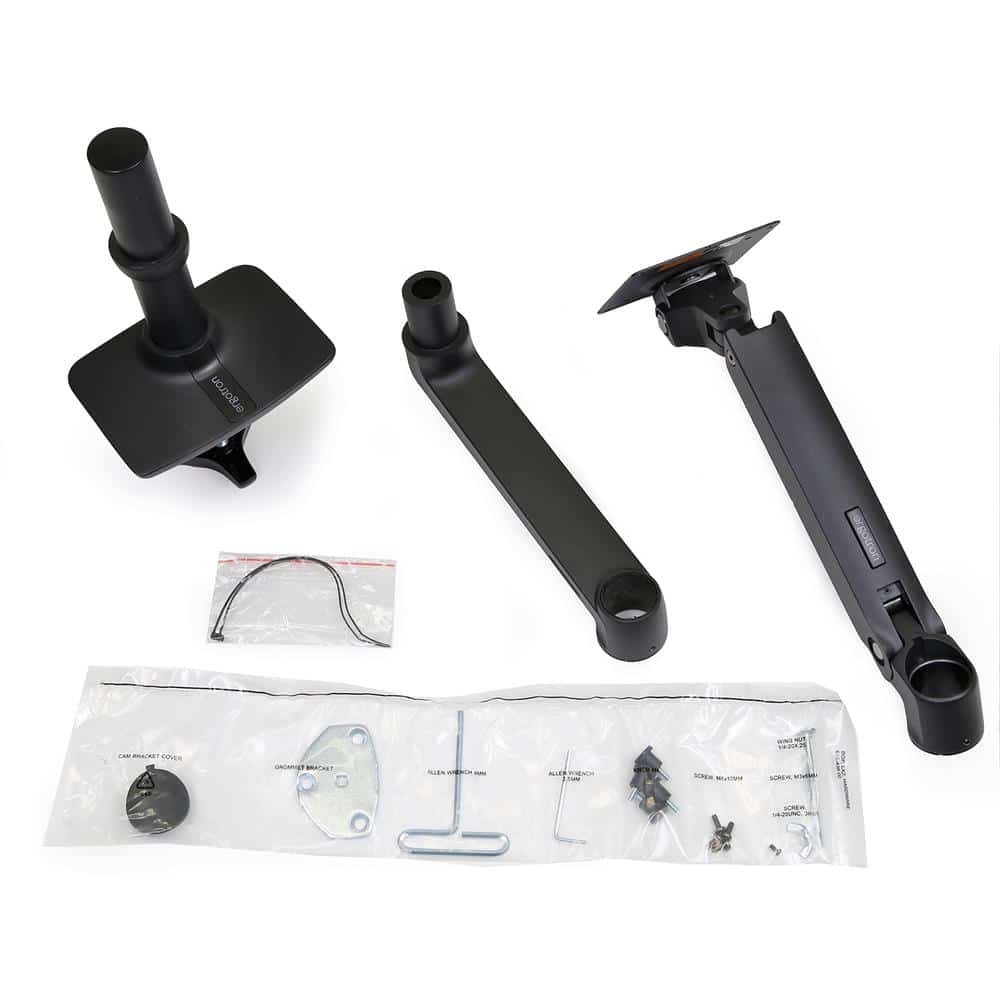 • Includes arm, extension, base, 2-piece clamp, grommet mount, 8″ pole, attachment hardware
