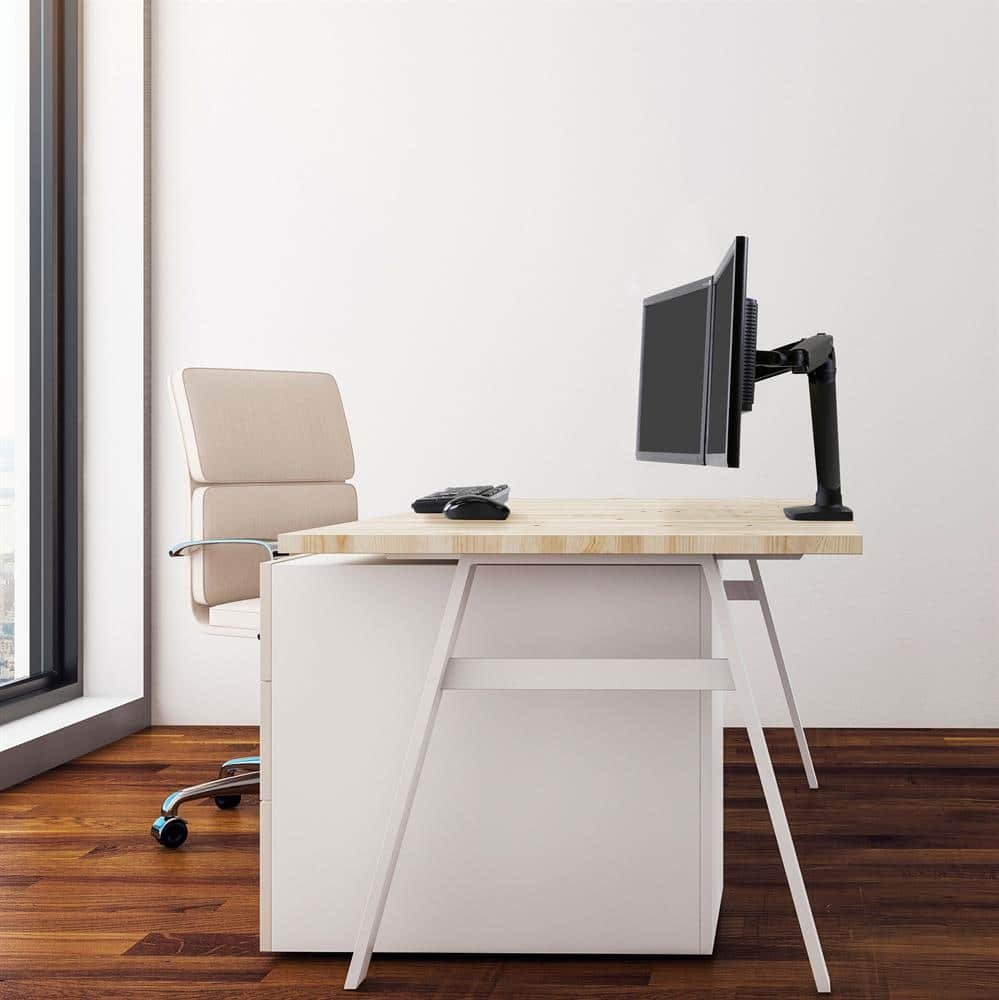 • Arm folds back over the base into a compact retracted position; perfect for tucking under systems furniture storage shelves or cabinets in space constrained areas