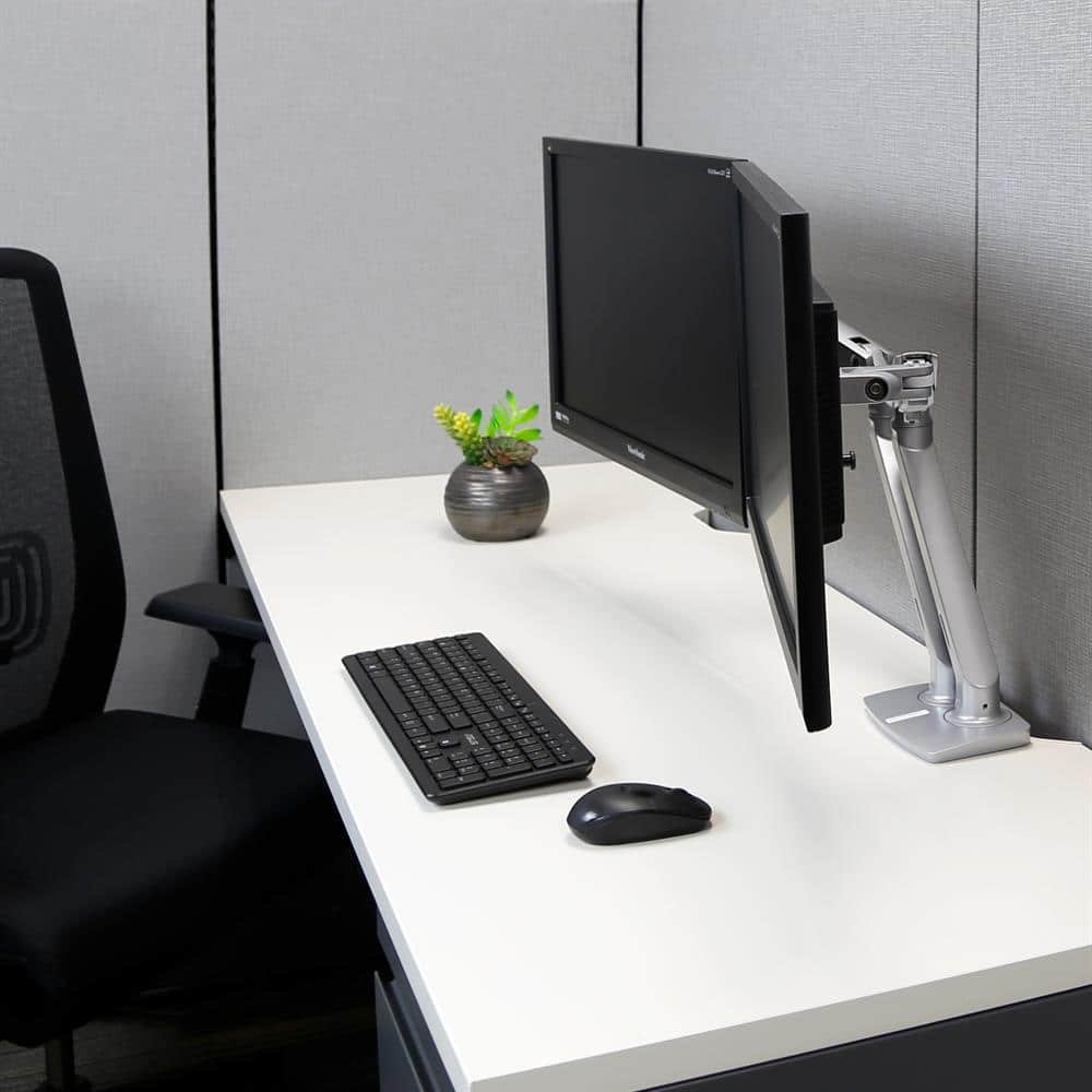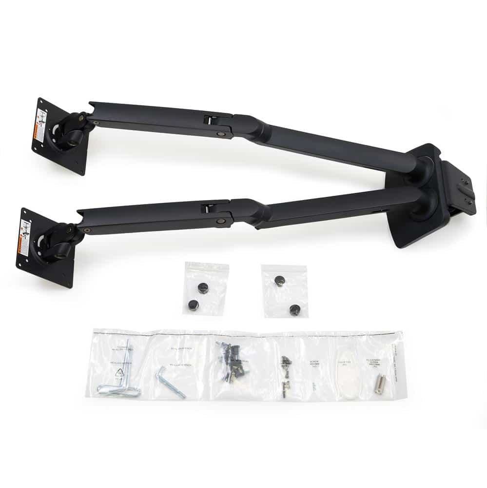 • Includes fully assembled dual arm, two-piece desk clamp, mounting hardware