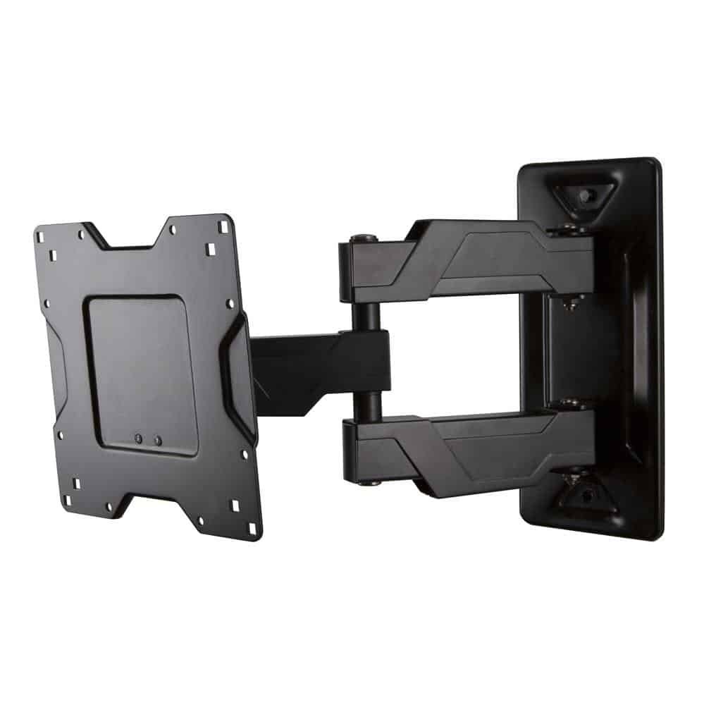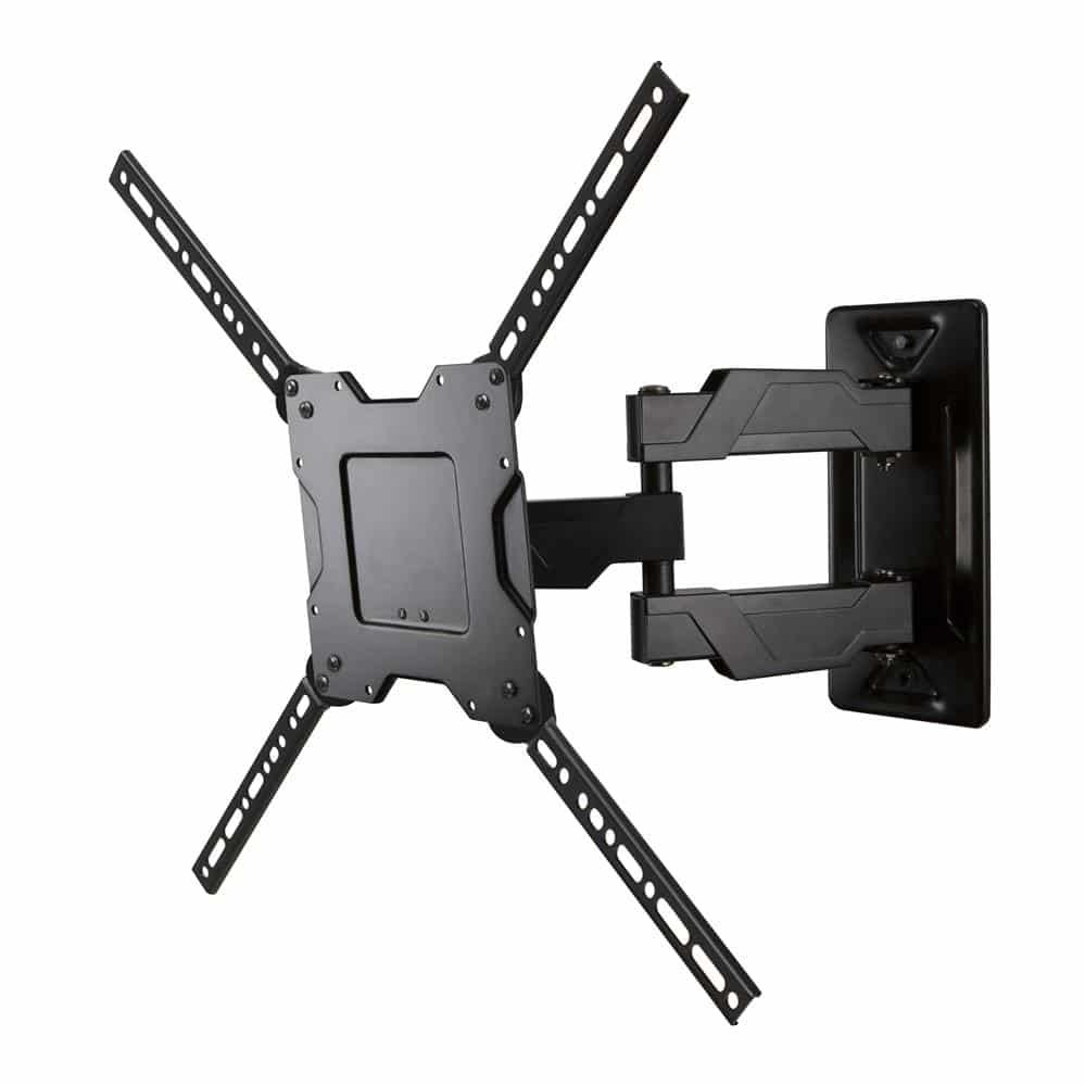 This low-profile full motion mount fits most 32″–63″ flat panel monitors and TVs up to 80 lbs (36.3 kg) and is well-suited for those applications where seamless integration counts most. Extruded aluminum construction provides maximum support in a lightweight TV wall mount. Its thoughtful design provides ample throw and nests the display centered on the wall.