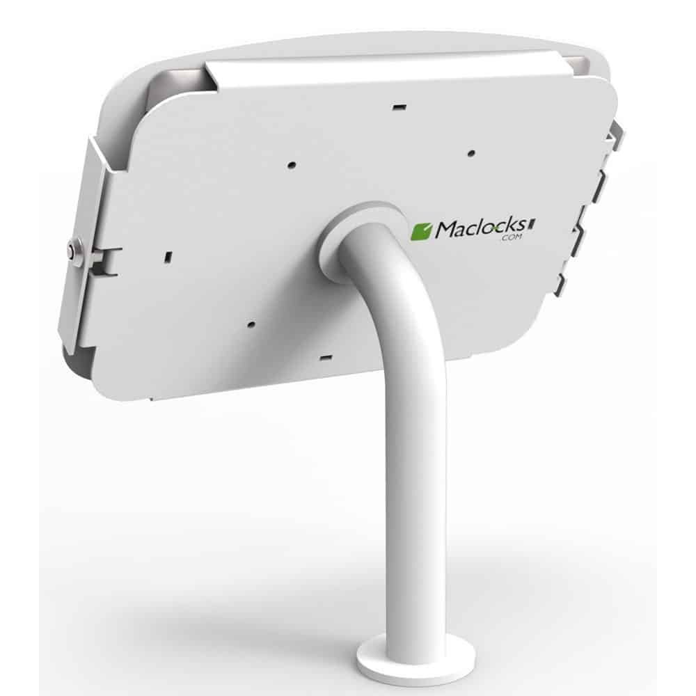 Made from premium, high-quality aluminum for maximum security, this pole-mounted iPad enclosure kiosk offers you with a robust iPad stand specifically designed for high volume display area. The metal enclosure is resistant to any tamper or hazardous activities, yet it does not interfere with the iPad’s capability to communicate with external networks such as Wi-Fi, Bluetooth or 3G. This desk-mounted iPad kiosk, which can also be setup as a low floor stand, provides a full cable management system allowing you to setup a neat and clear display environment. Displaying your iPad at 60 degree angle for the finest viewing experience, this iPad enclosure also has the capability to rotate in 90 degree angle between landscape or portrait orientation to cater to all kinds of iPad contents and applications. This pole-mounted iPad enclosure kiosk is the perfect solution for implementations at school labs, healthcare industry, corporate offices, retails and VIP lounge or point of sale environments. Available colours: Black/White