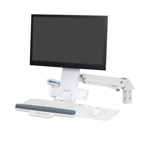 Includes Combo Arm, wall mount bracket, track mount bracket kit, height-adjustable LCD mount, wrist rest, scanner and mouse holder, integrated keyboard tray with left/right mouse tray, handle, VESA monitor mounting kit, cable ties