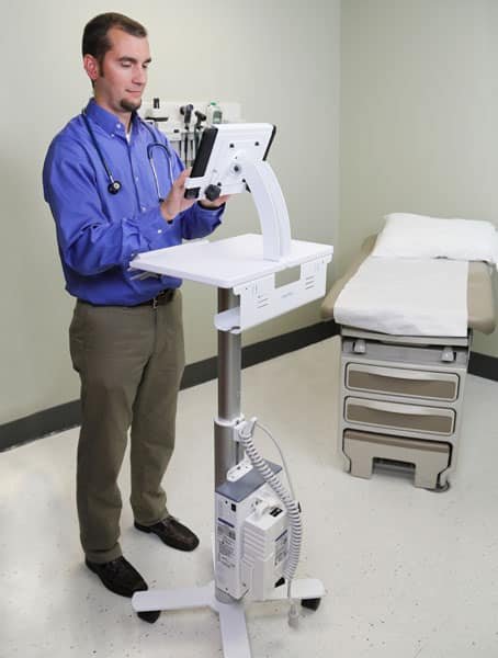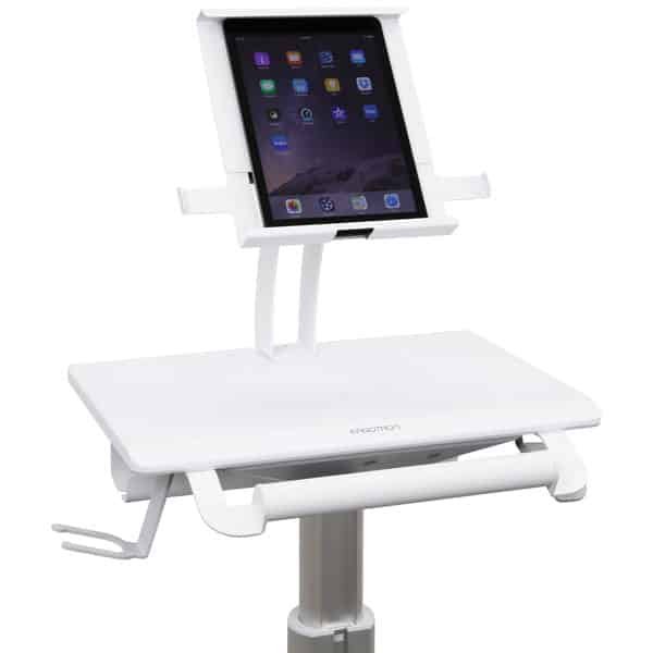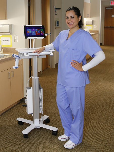 StyleView® Tablet Cart for hospital allows for 15” (38 cm) vertical travel to suit sit and standing position.