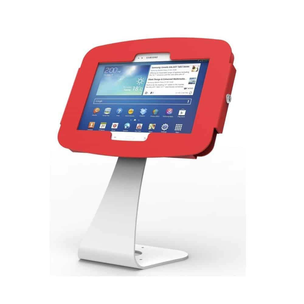 Elegantly designed, this Samsung Galaxy tablet enclosure kiosk features a sleek, white, swan-necked sloping stand which allows you to introduce a new level of class to any setup. With the ability to rotate in a 90-degree angle and angle at 60 degrees, this tablet stand provides optimal viewing while sitting securely at 35 cm above the counter-top. In addition, this swan-necked Galaxy enclosure’s clear wiring, along with its double security mechanism - bolted base and lockable enclosure - provides you with a highly secured, clean and neat station that is welcoming to all customers. Providing an optimal display experience with a 60-degree viewing angle, this Samsung Galaxy enclosure is designed to give you full security with flexible access to the front and rear camera, charging port and audio port. Available colours: White/ Black/ Blue/ Red