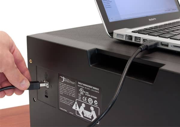 Tablet Management Desktop 16 comes with simple cabling setup and neat cable management within dedicated drawer located on each module and separated from tablet compartment to prevent unauthorized access to cables.
