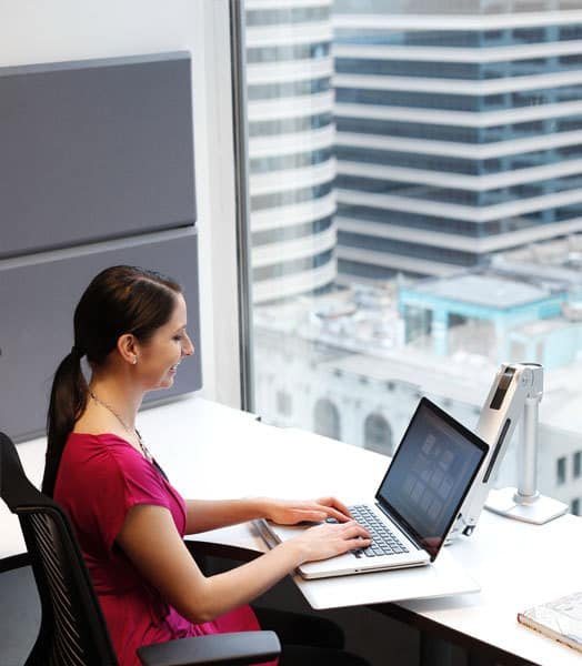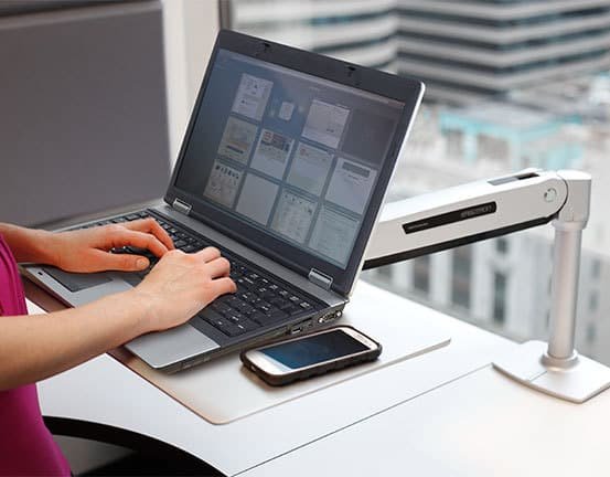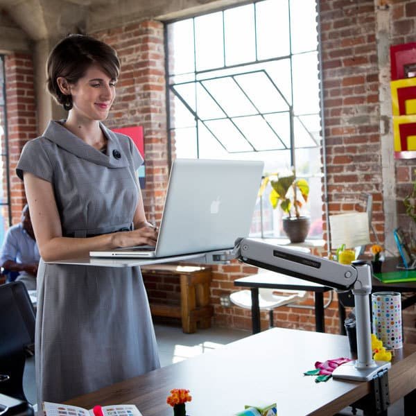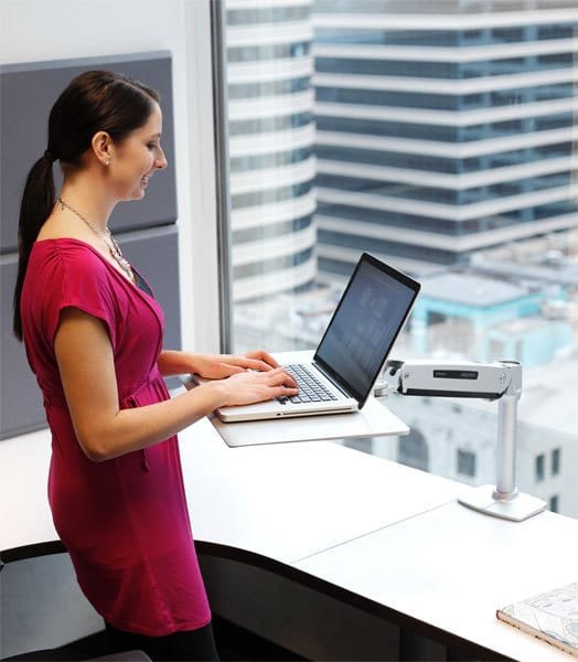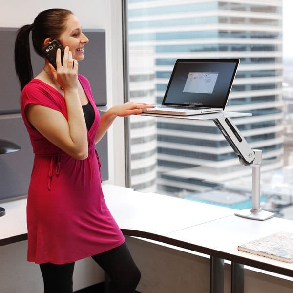 WorkFit-P, Sit-Stand Workstation is an adjustable workstation that comes with minimalist platinum laptop desktop place any notebook computer and an extendable arm to position it wherever you want it. Alternatively, the tray surface can be used for writing or drawing in an ergonomic position. Not just a typical laptop stands or laptop trays on the market, WorkFit-P Sit-Stand Workstation is made of high-quality, solid-aluminum construction with advance functionalities and adjustment capabilities. With simple installation, The WorkFit-P Sit-Stand Workstation instantly creates an ergonomic laptop desk that enables you to stand more and sit less for a healthy work routine.
